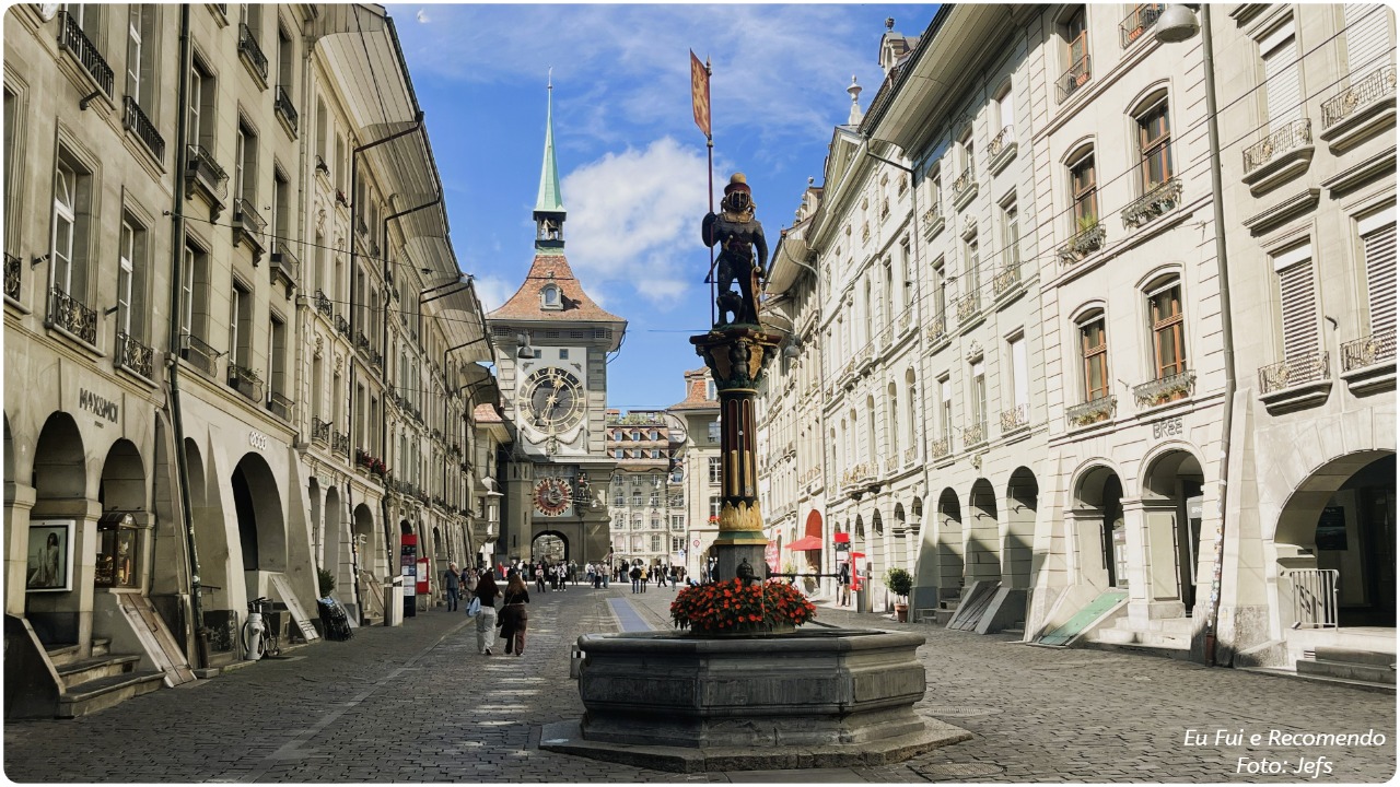 As ruas de pedra, as arcadas medievais e a vista para o rio Aare criam um cenário único. Apreciamos o famoso Zytglogge (relógio astronômico), o Parlamento Suíço e os jardins floridos que dão um charme especial à cidade.