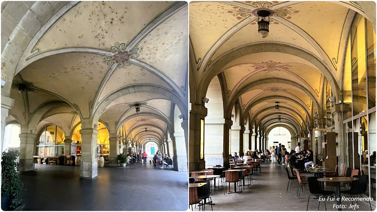 Atualmente, o Kornhaus funciona como um restaurante. Deu para fazer apenas fotos das arcadas externas. Endereço: Kornhauspl 18, Berna.