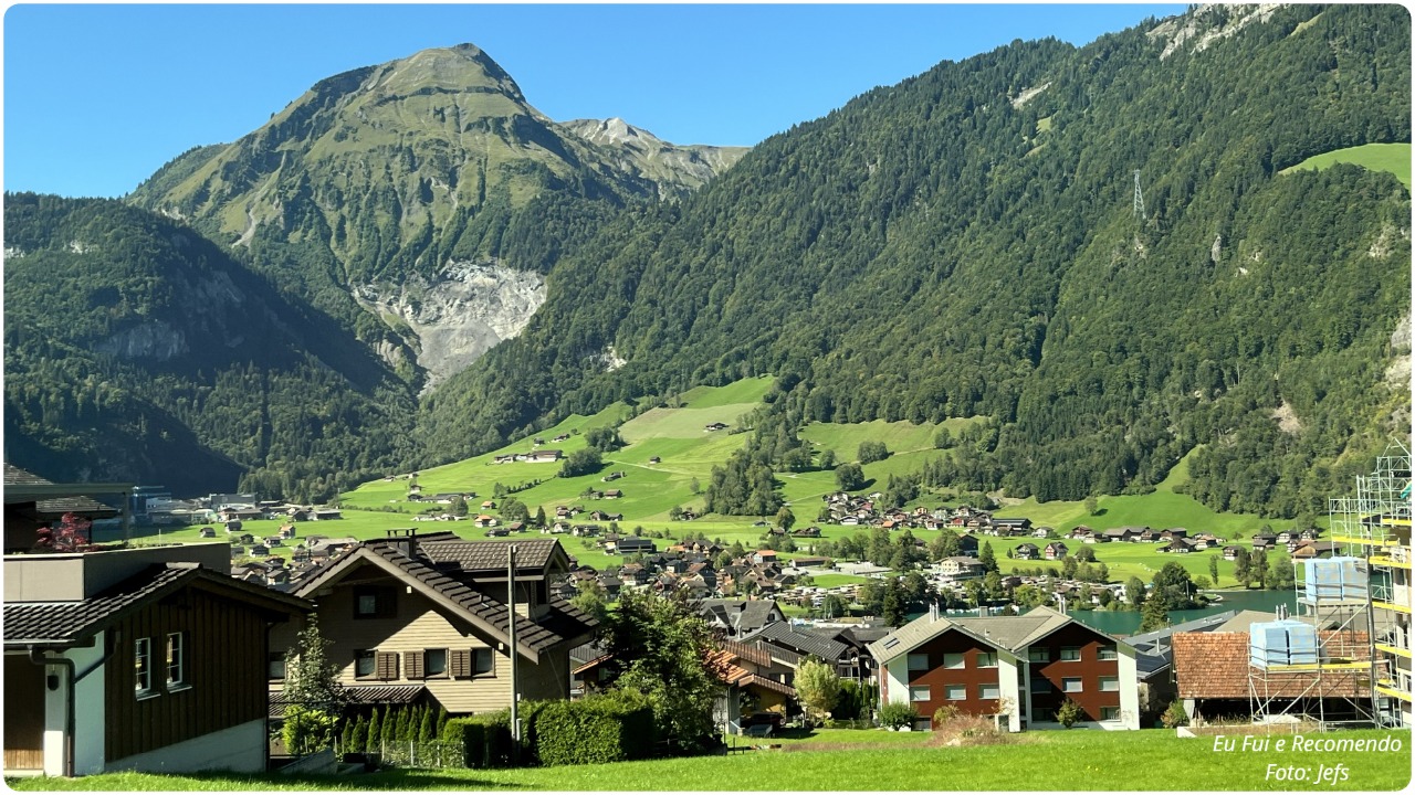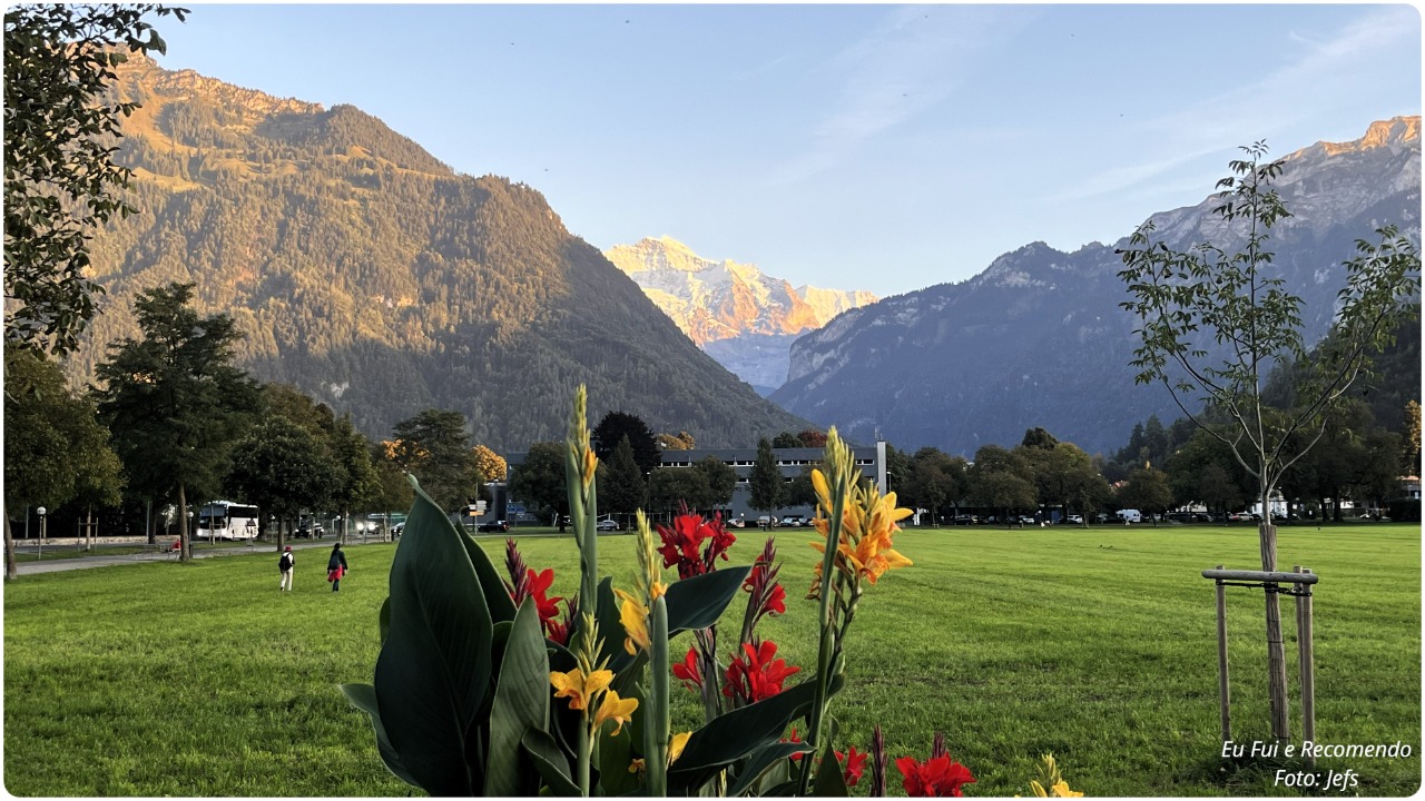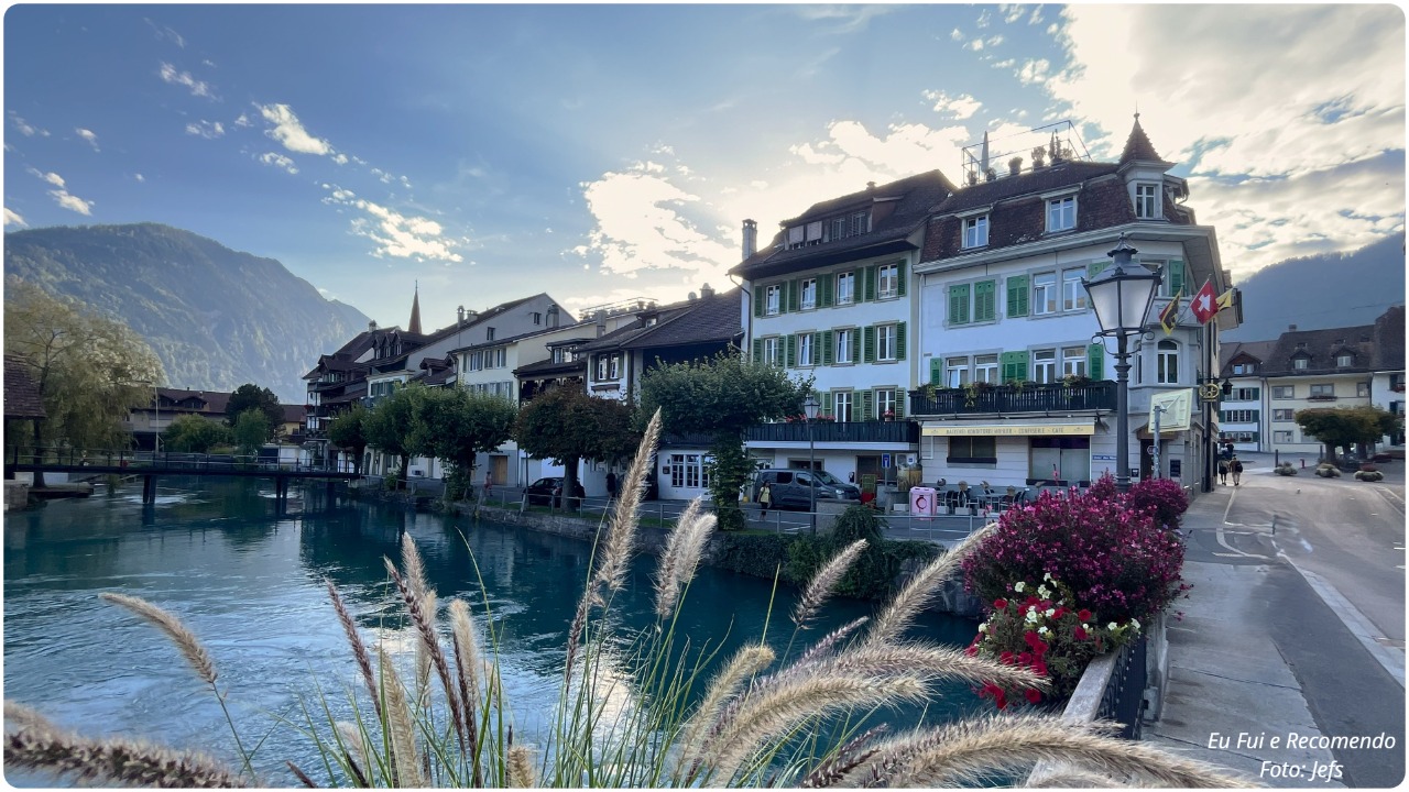 Em setembro de 2025, visitamos a encantadora cidade de Interlaken, na Suíça, onde passamos dois dias. O clima estava ameno e agradável, típico do final do verão europeu, com dias claros que permitiam admirar plenamente as montanhas e os lagos que emolduram a cidade.
