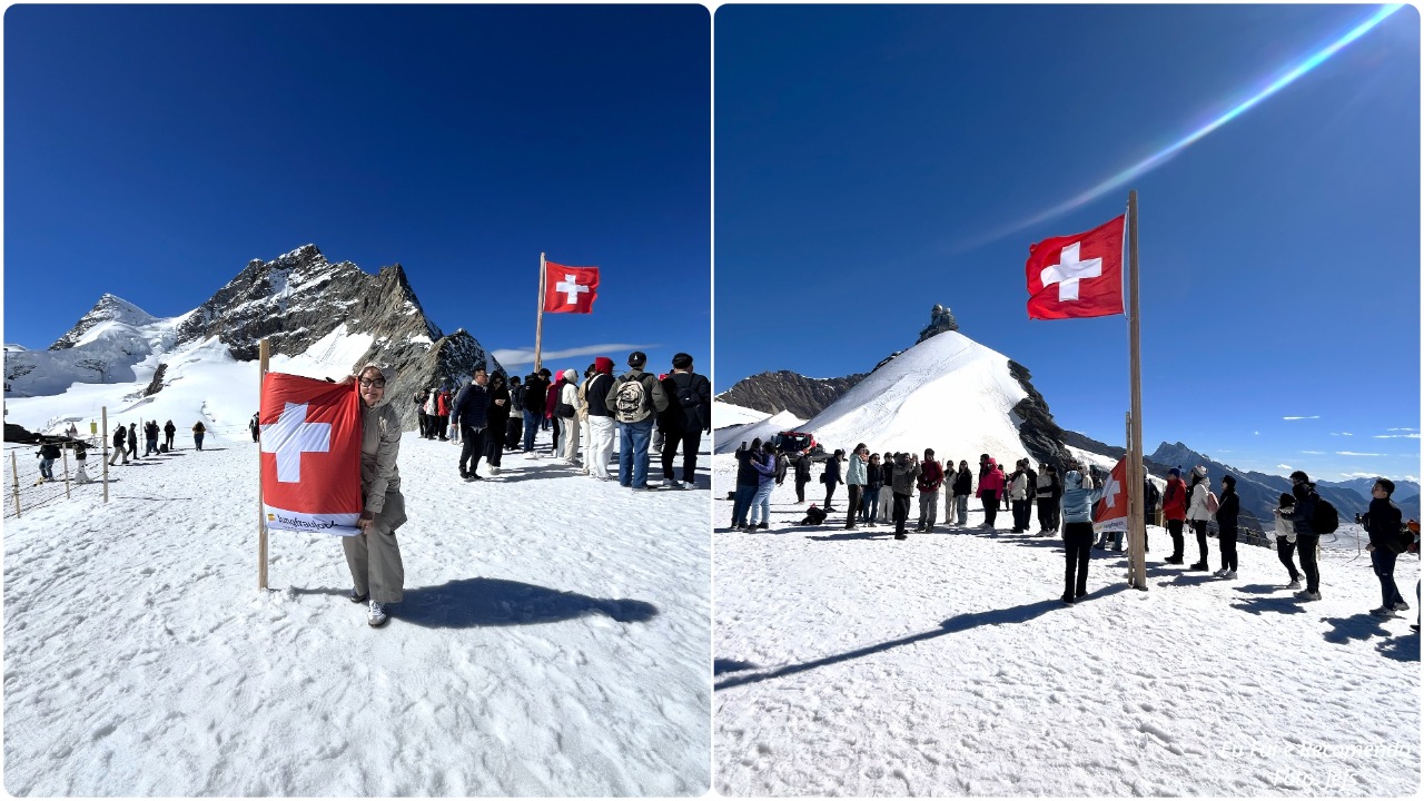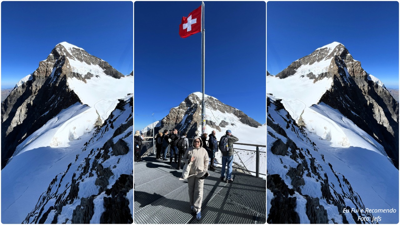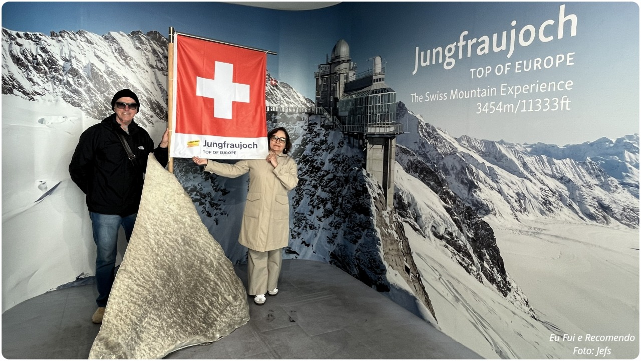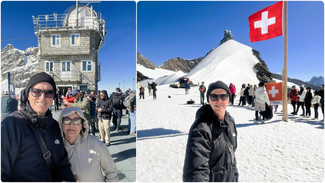 Também visitamos o observatório, que oferece uma vista panorâmica impressionante de toda a região. Outra atração imperdivel é a caminhada pela neve, ao lado da bandeira suíça cravada no ponto mais alto da Europa, foi uma experiência inesquecível, transmitindo a sensação de estar no topo do mundo.