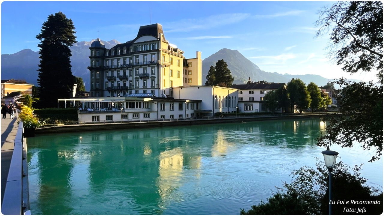 Chegamos a Interlaken, no final da manhã de uma sexta-feira, era setembro de 2025, logo percebemos o encanto de uma cidade situada entre dois lagos, o Thun e o Brienz, e aos pés de majestosos picos de montnhas como o Eiger, Monch e Jungfrau. O nome “Interlaken” significa literalmente “entre lagos”, e descreve perfeitamente sua localização privilegiada.