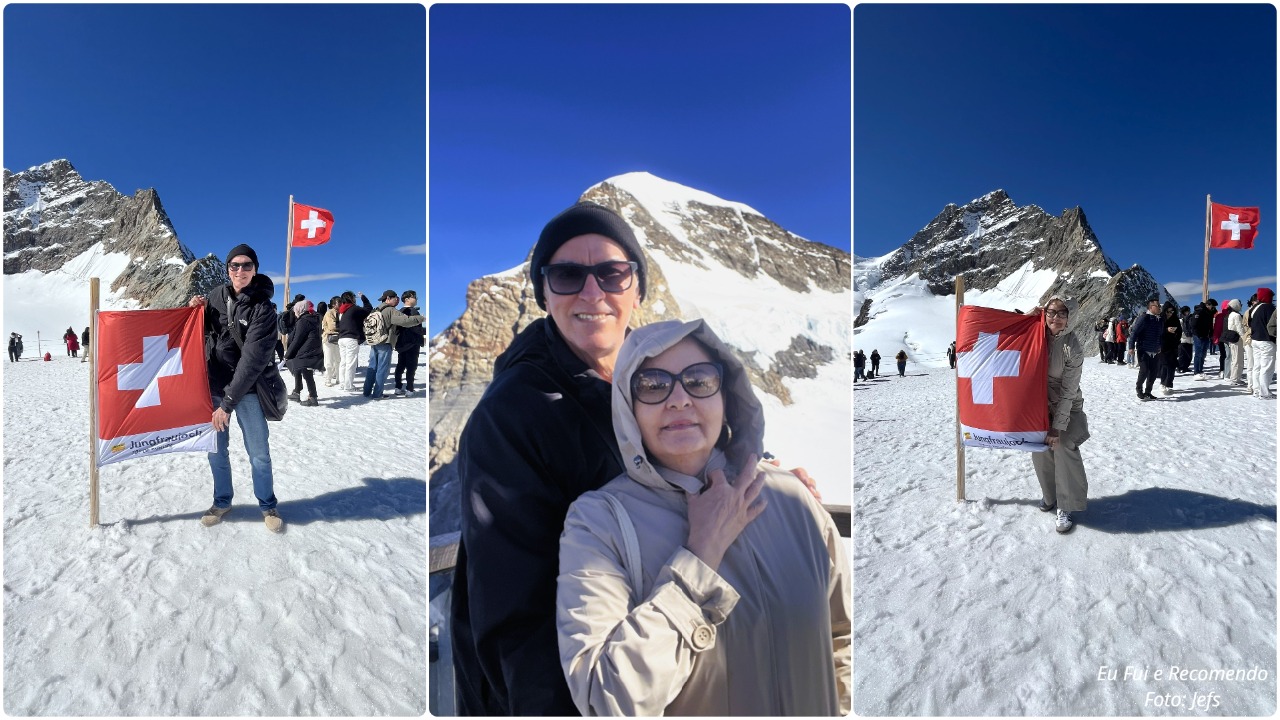 E, para coroar a visita, fizemos o inesquecível passeio ao Monte Jungfraujoch – Top of Europe, onde admiramos a eterna neve dos Alpes Suíços.