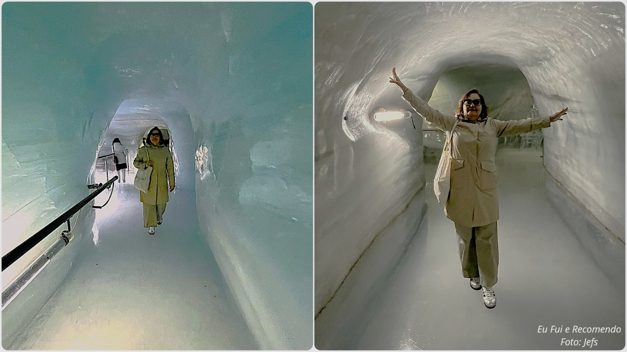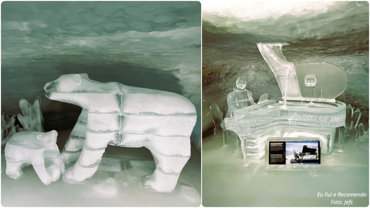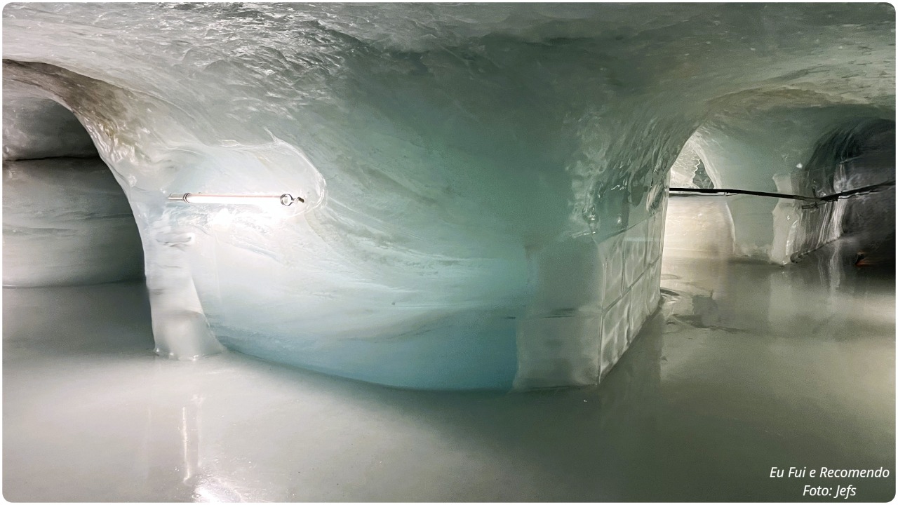No Jungfrau, exploramos o fascinante Palácio de Gelo, onde esculturas de gelo artisticamente esculpidas transformam o ambiente em um verdadeiro museu congelado.