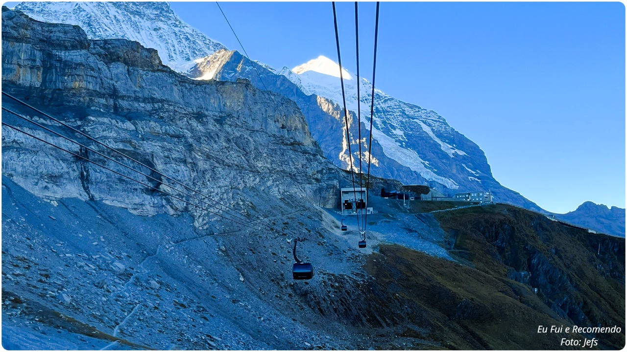 Após aproveitar cada instante no deslumbrante cenário alpino do Jungfrau, iniciamos a descida até Grindelwald a bordo de um teleférico de gôndolas, desfrutando de vistas espetaculares durante todo o trajeto.