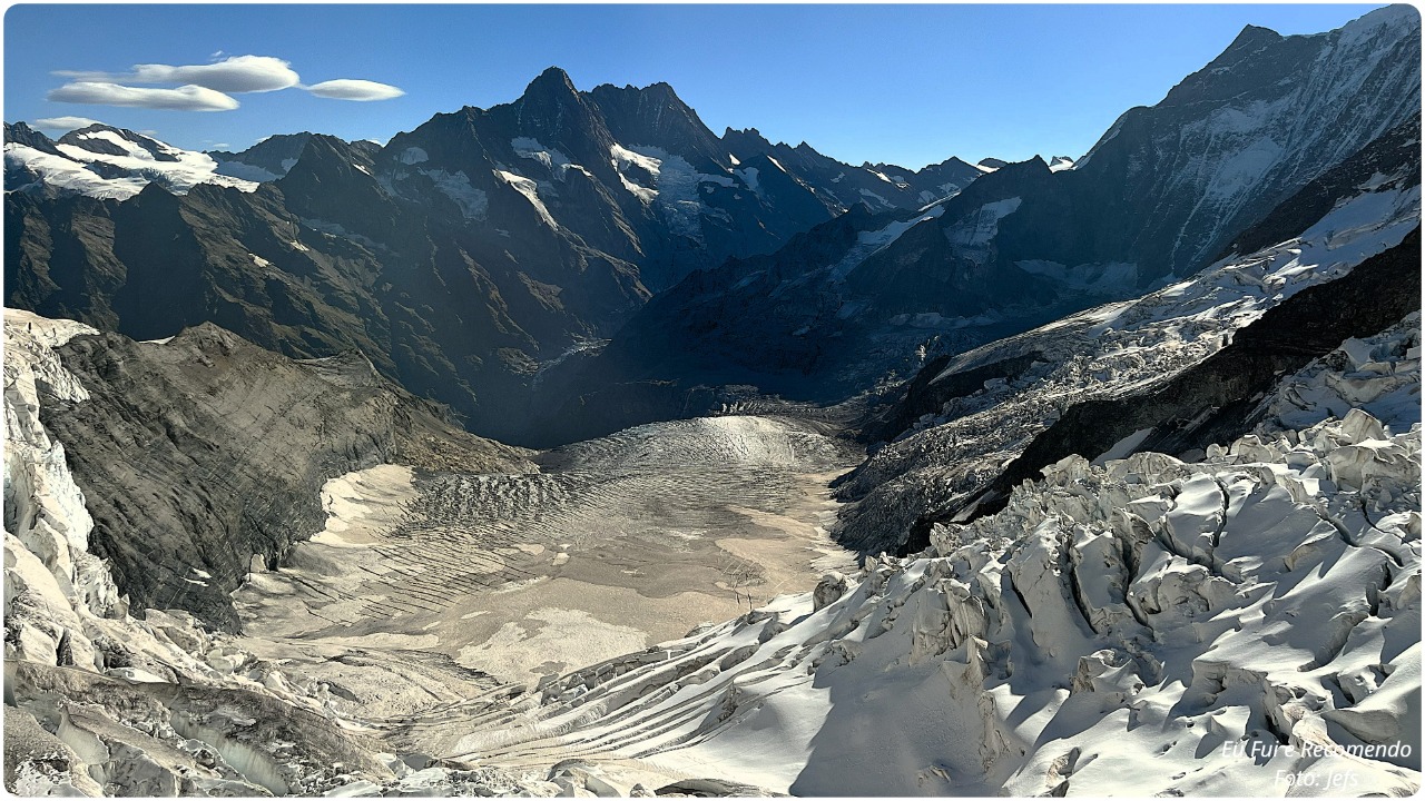 A descida do Monte Jungfrau, o famoso “Topo da Europa”, é simplesmente espetacular! O teleférico desliza suavemente nas alturas entre picos nevados, revelando paisagens de tirar o fôlego — enormes geleiras brilhando ao sol propocionando uma experiência que mistura aventura e contemplação, difícil não ficar grudado na janela admirando cada momento!