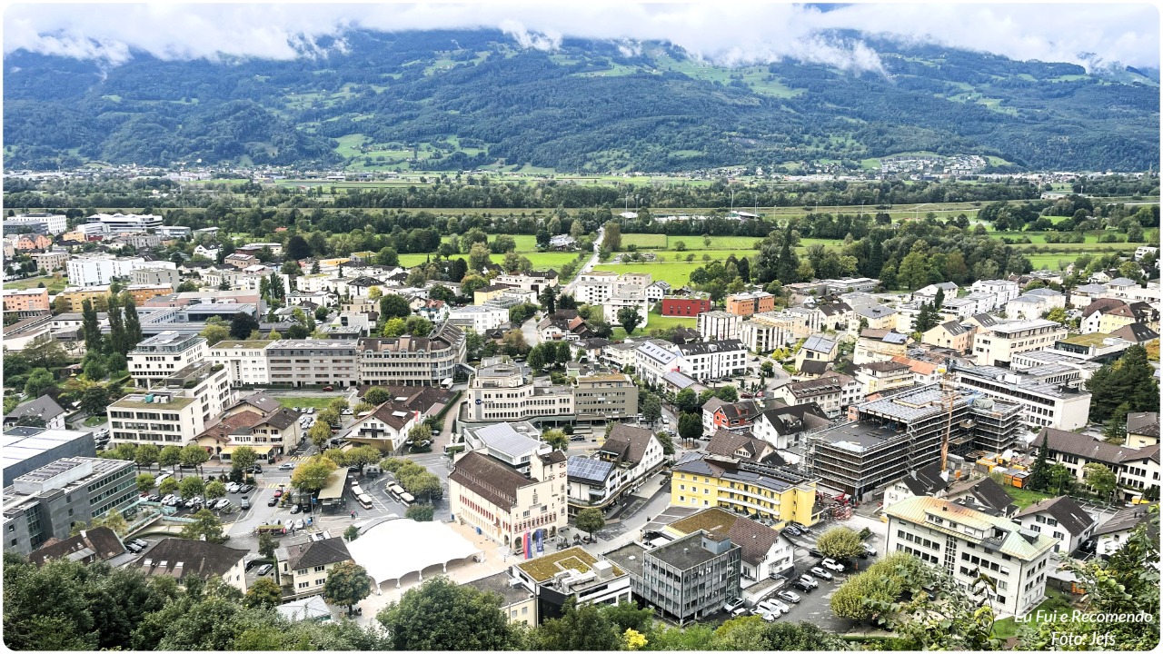 Visitamos Vaduz, a charmosa capital do Liechtenstein, no início do outono de 2025, quando as montanhas ao redor já começavam a ganhar tons dourados. O clima estava agradável, com aquele ar fresco típico da estação, perfeito para explorar a cidade a pé.