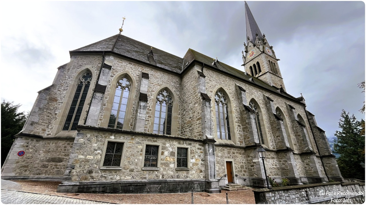 Vindo de Zurique/Sargans, descemos na parada de ônibus “Vaduz Post”, localizada bem perto da Catedral de São Florim, que foi o primeiro ponto turístico que visitamos na capital de Liechtenstein.