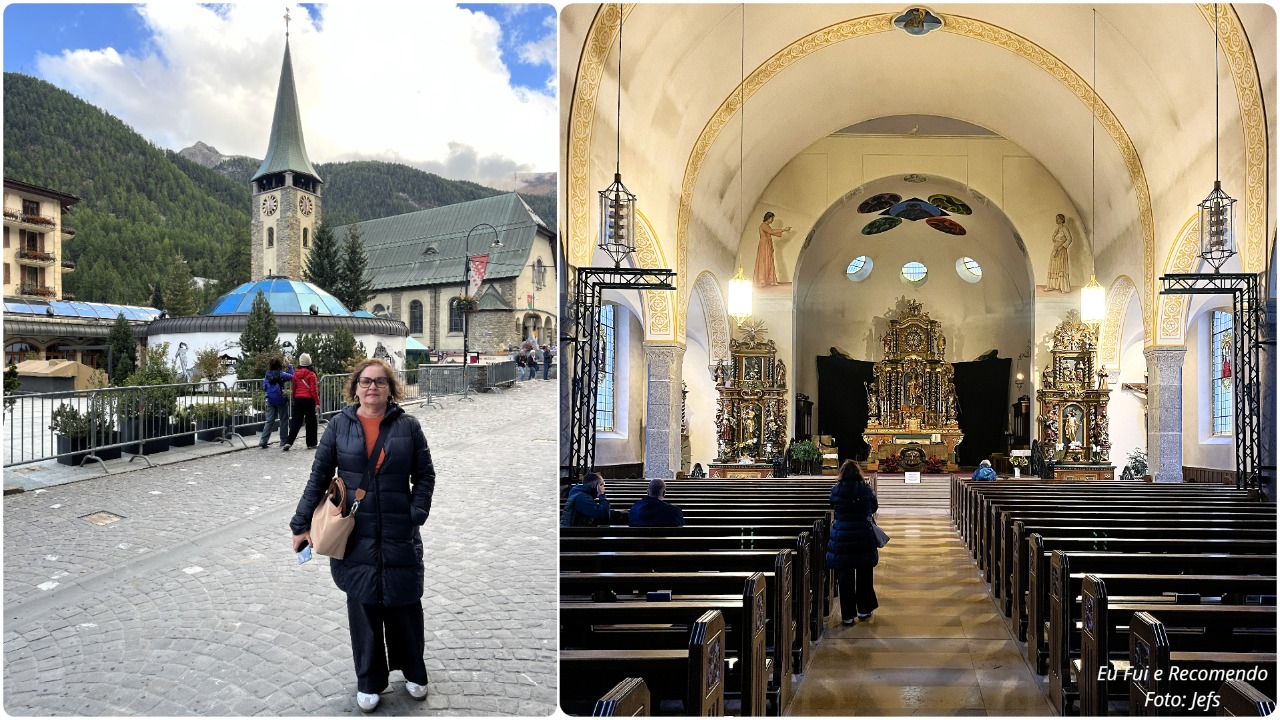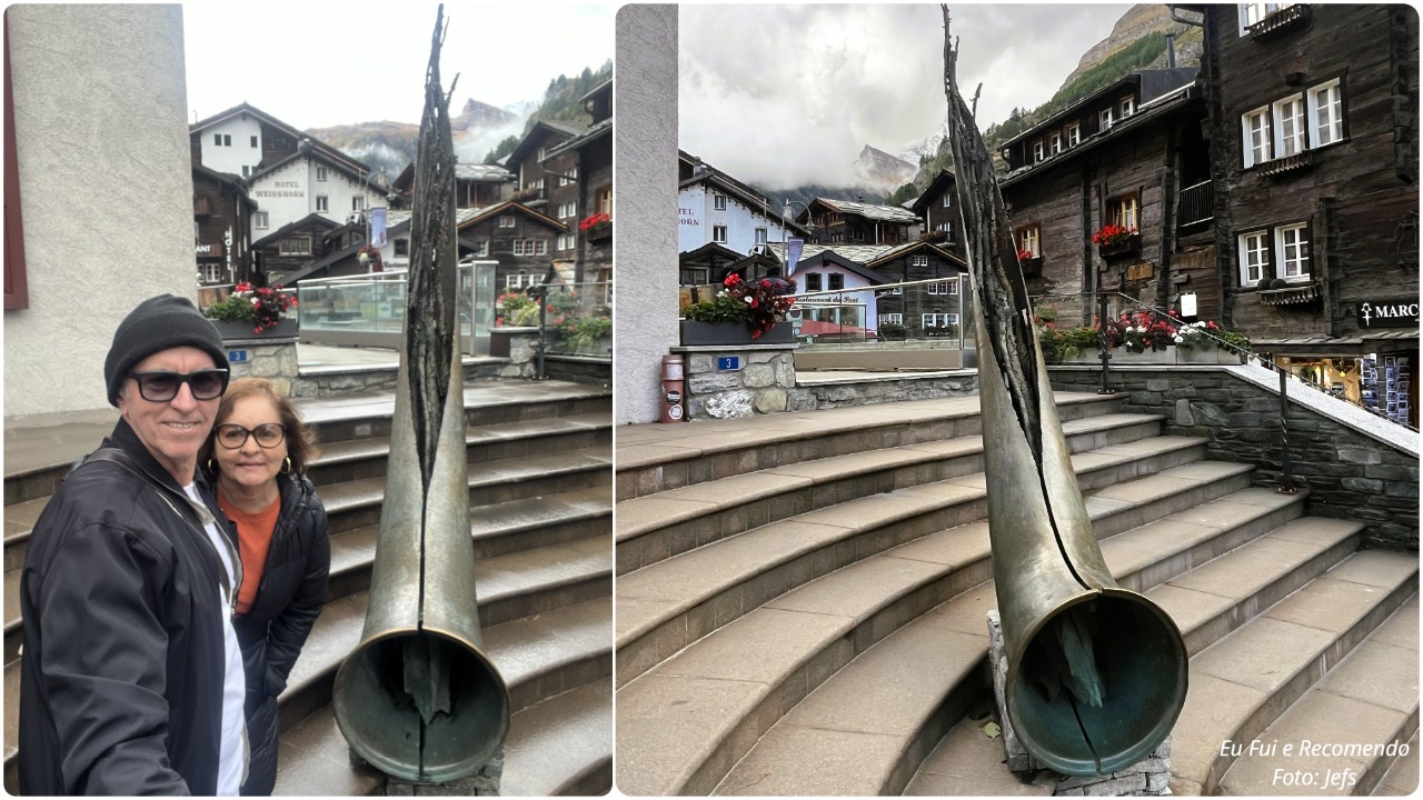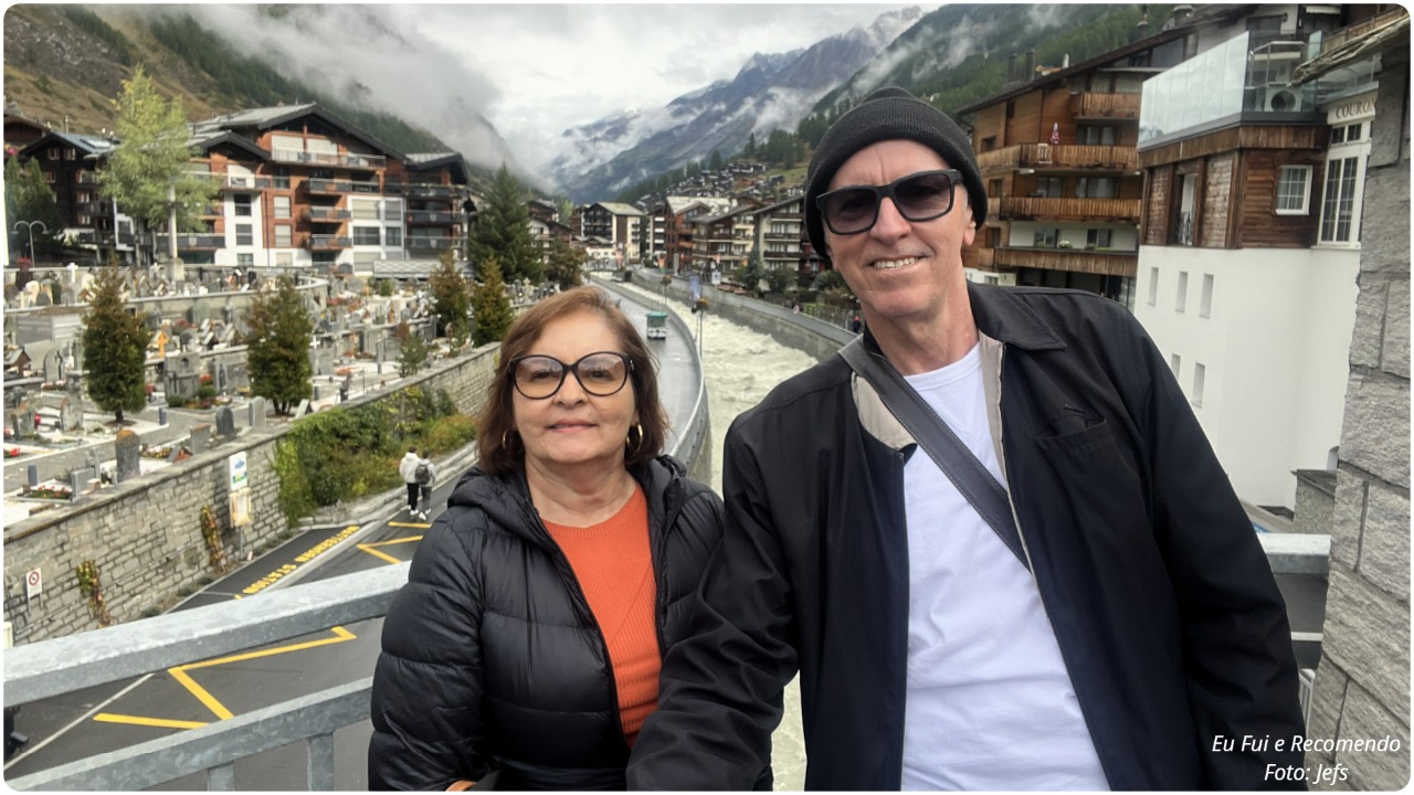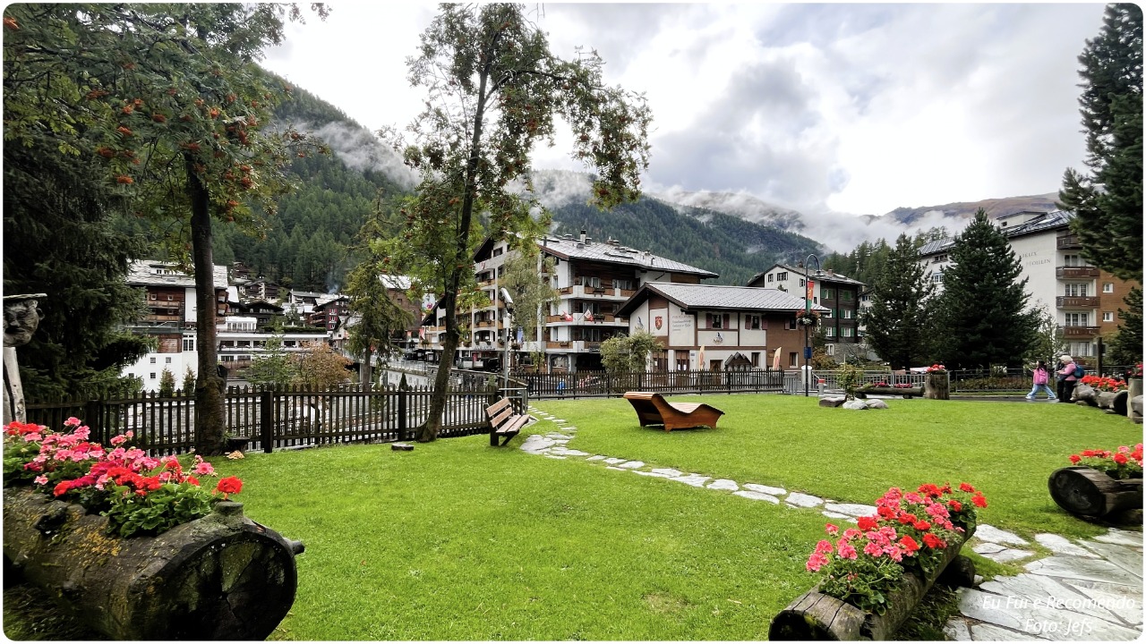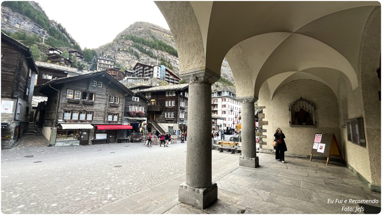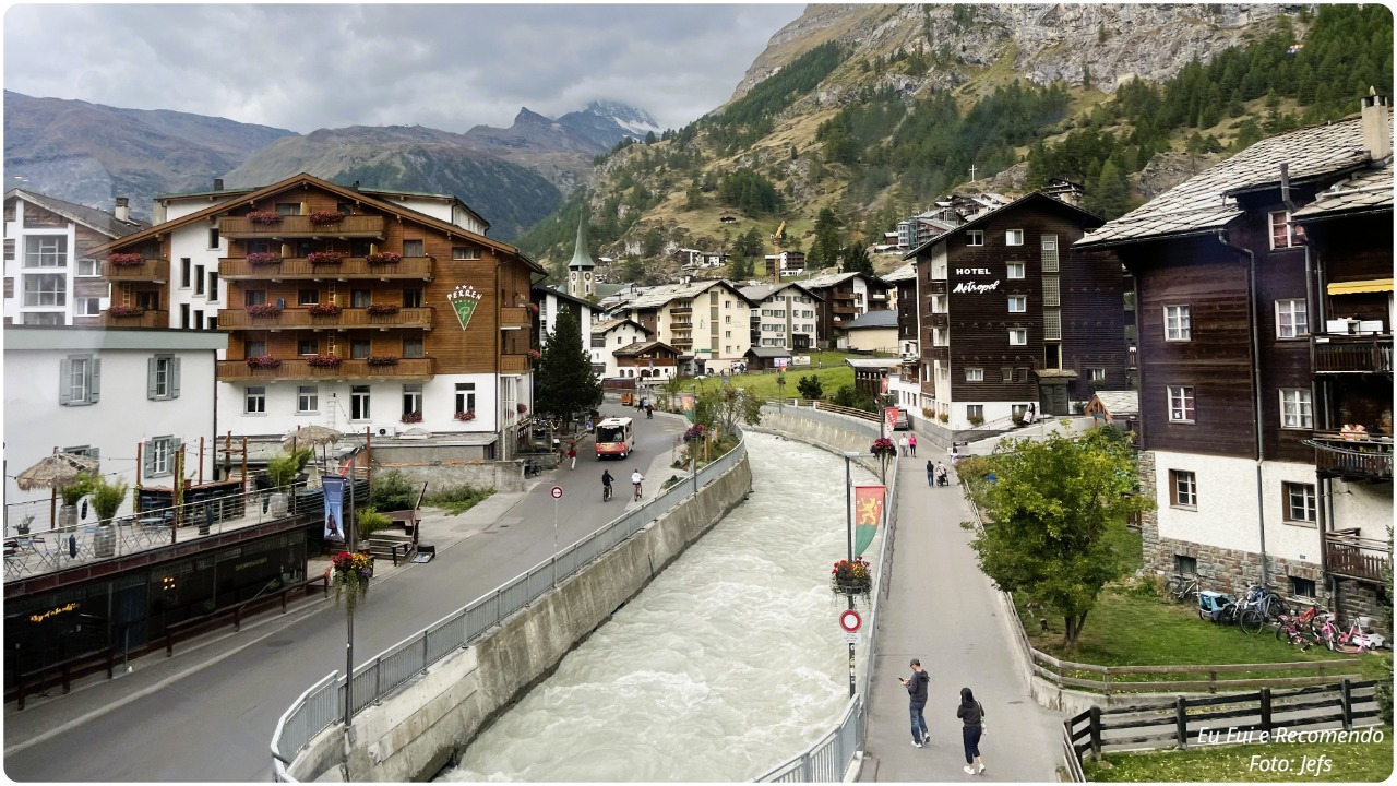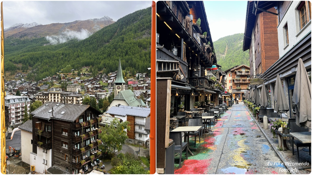 Durante nossa estada em Zermatt, tivemos a oportunidade de explorar com calma o centro da cidade, um lugar encantador, repleto de chalés típicos, lojas charmosas e restaurantes acolhedores, tudo com a vista majestosa para as montanhas alpinas.