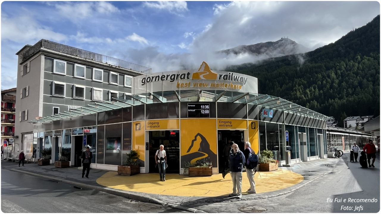 Chegamos a Zermatt no final de uma manhã, sob um céu parcialmente nublado, mas com o tempo estável. Seguimos diretamente para o hotel, onde deixamos as malas, e logo partimos em direção à estação Gornergratbahn para dar início ao passeio do Gornergrat.