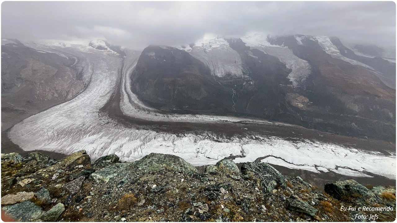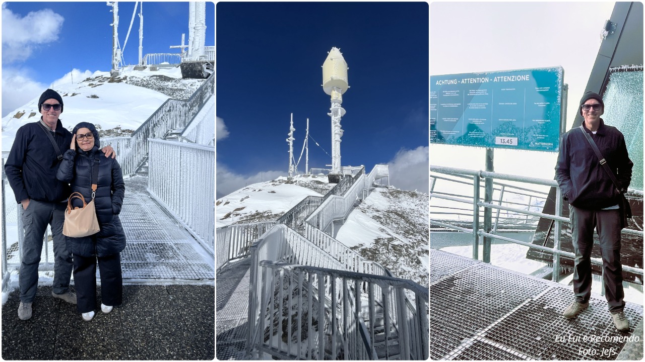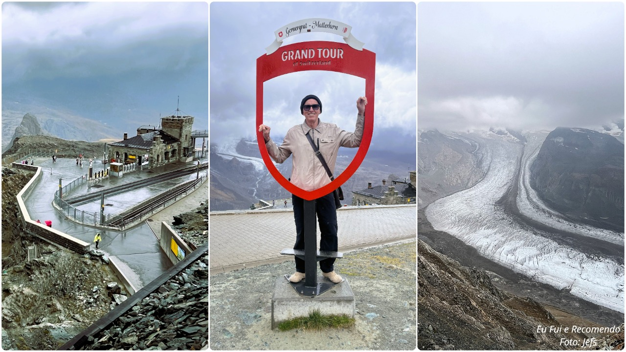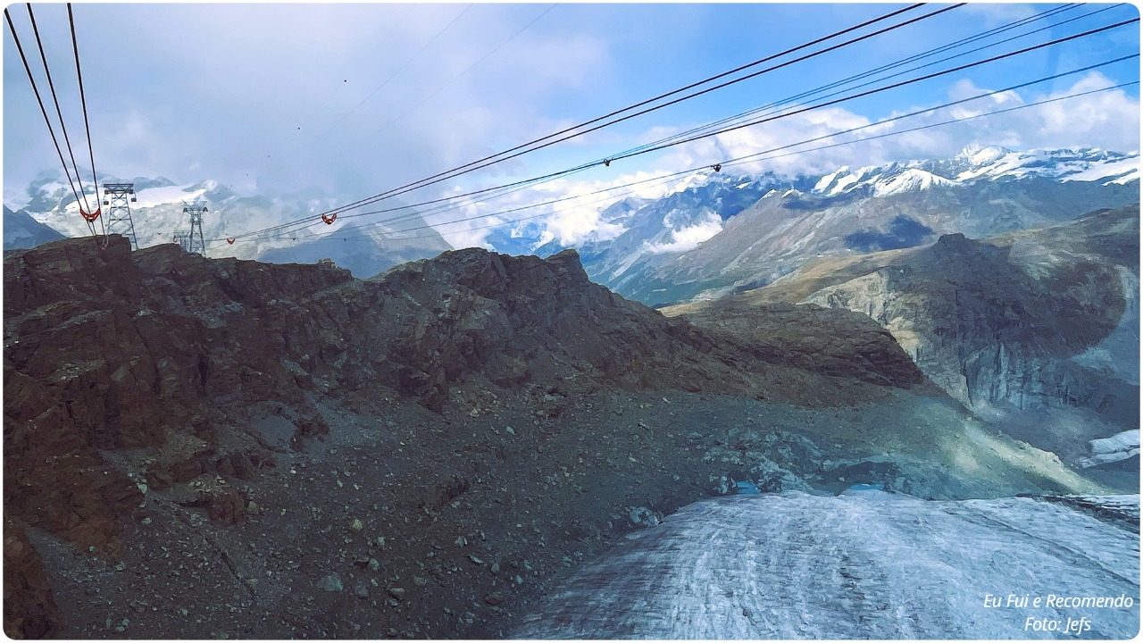 No topo, há um mirante espetacular de onde se tem uma vista impressionante do Matterhorn, uma das montanhas mais famosas dos Alpes. Pena que nesse dia estava com bastante nebulosidade, mesmo assim os glaciares enchem os olhares dos visitantes.