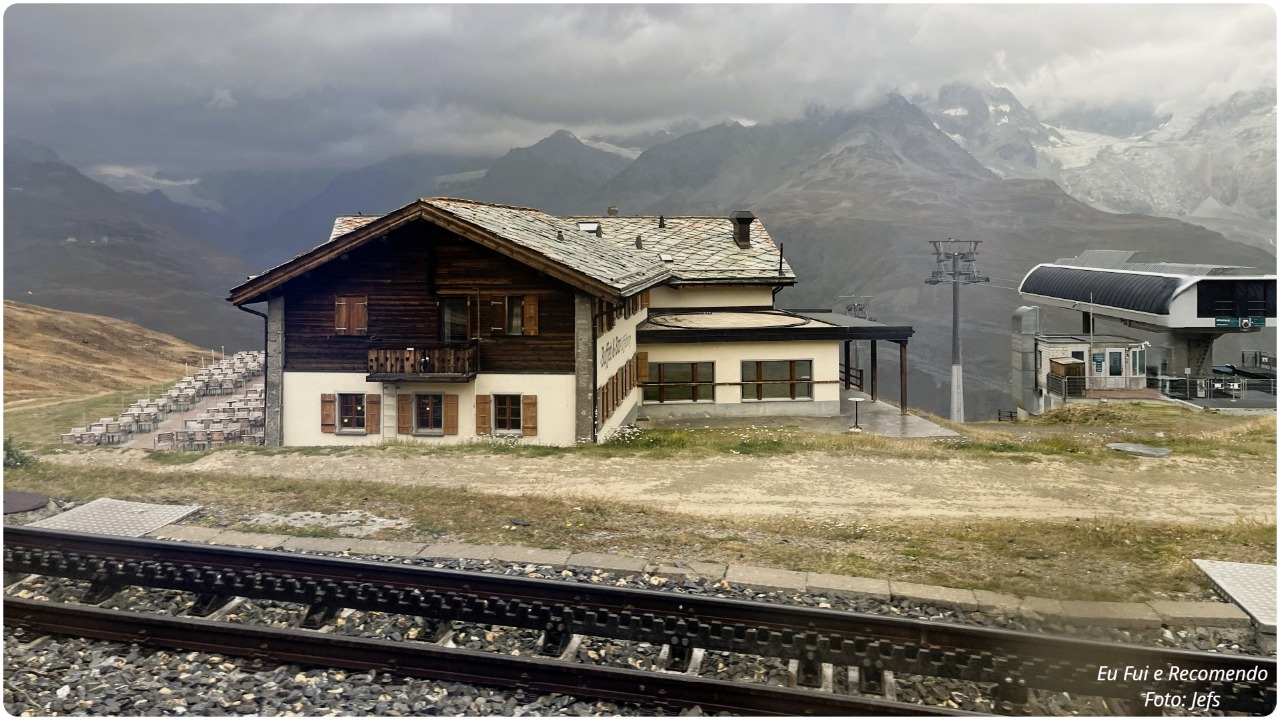 Fizemos também o famoso passeio de trem Gornergratbahn, que liga Zermatt ao Gornergrat. A viagem é espetacular, passando por paisagens alpinas, glaciares e picos nevados, culminando com uma das vistas mais impressionantes do Matterhorn. Infelizmente o tempo nas montahas é muito instável, a visibilidade nesse dia não estava boa.