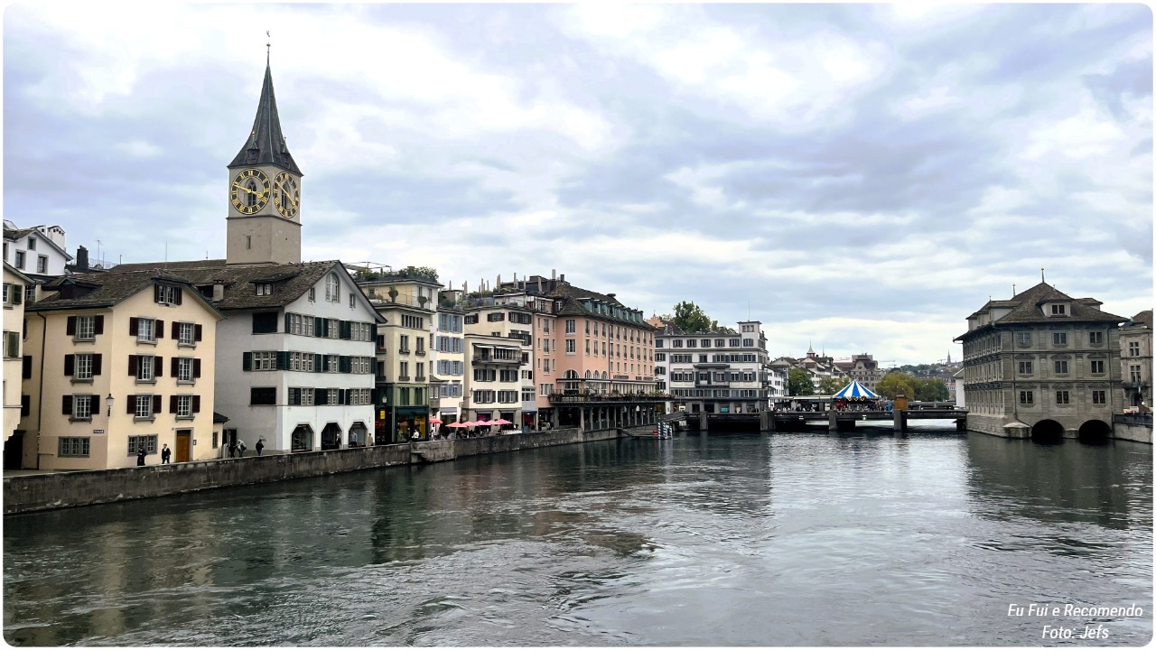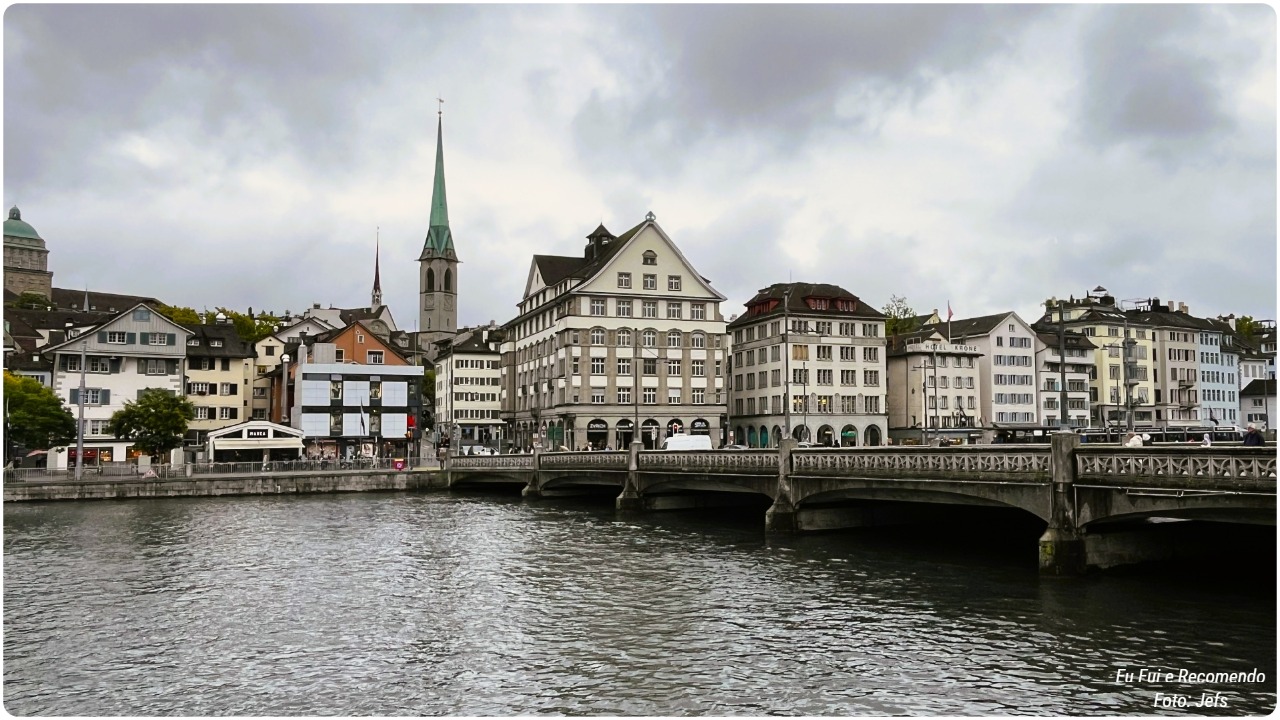 Entre uma voltinha e outra, visitamos belas igrejas que pareciam guardar segredos de séculos passados. Cruzamos pontes sobre o rio Limmat, admirando a cidade refletida nas águas calmas, e ainda caminhamos tranquilamente pelas margens, curtindo o visual e o clima sereno.
