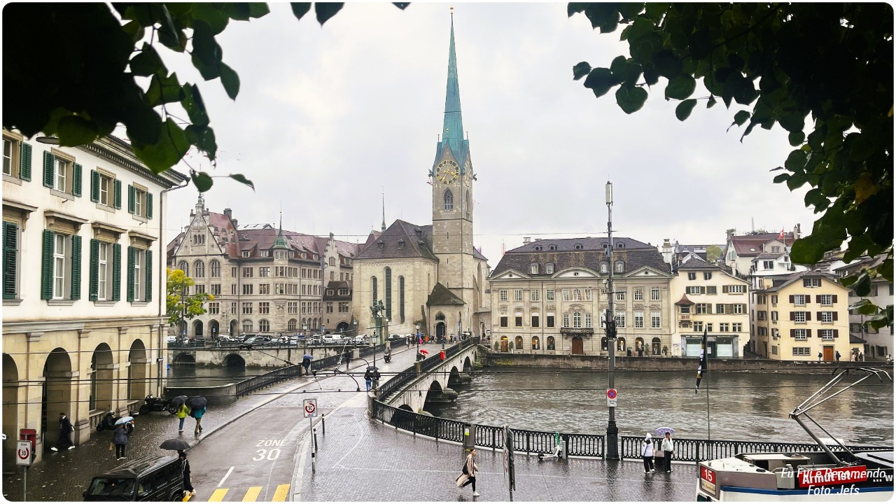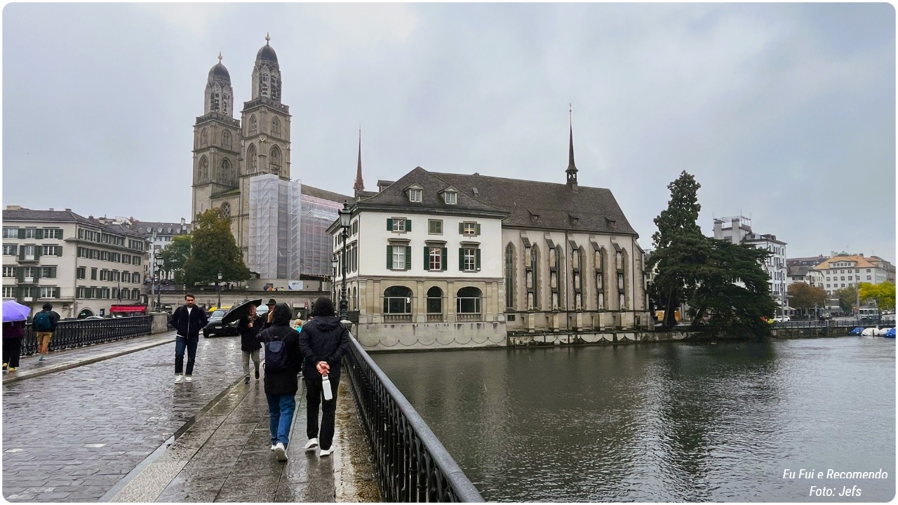 Entre uma caminhada e outra, seguimos pelas margens do rio Limmat, atravessamos as charmosas pontes e visitamos igrejas antigas que guardam séculos de história e belas obras de arte.