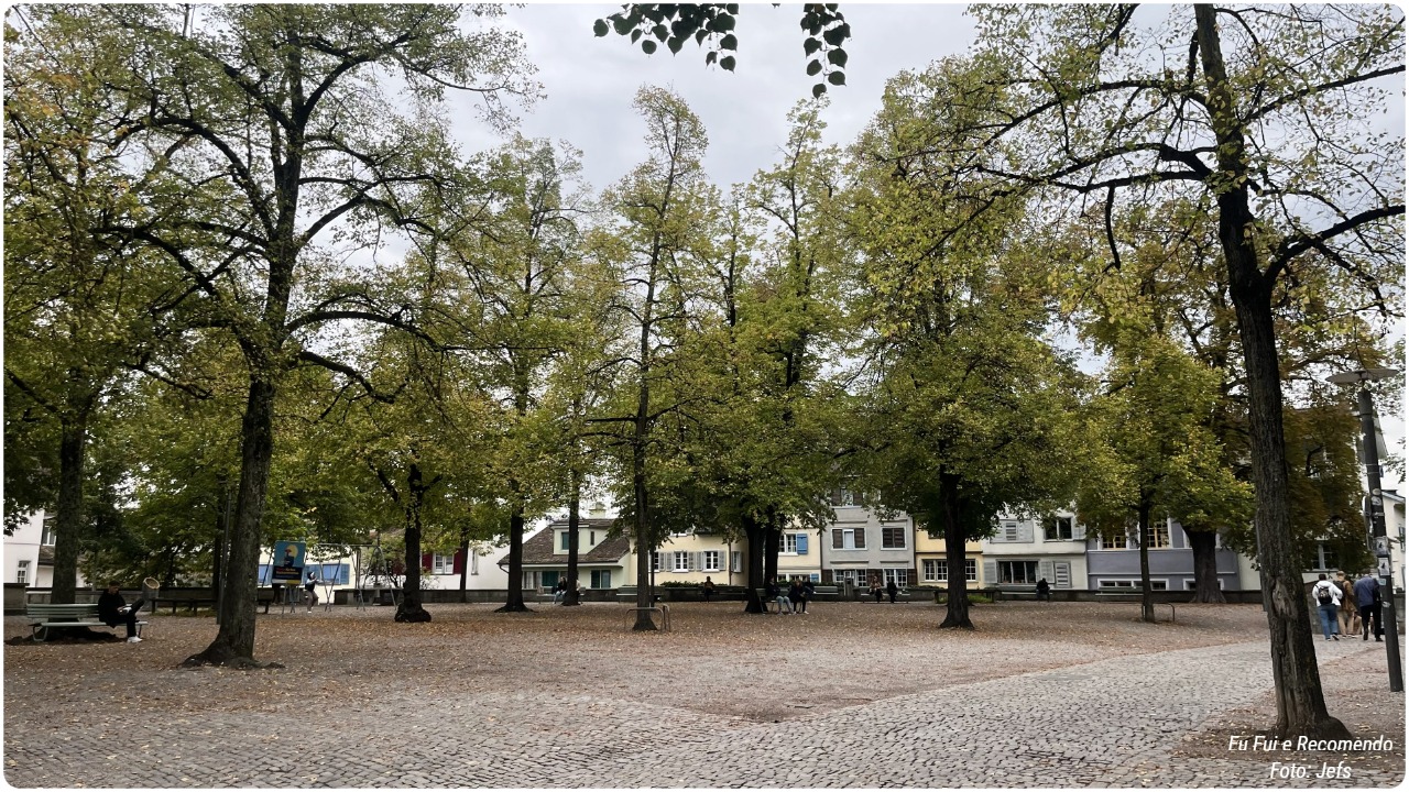 Finalizamos o passeio na Lindenhofplatz, um cantinho cheio de paz e com uma vista encantadora do centro antigo. Fizemos tudo sem pressa, no melhor estilo “vamos curtindo o caminho”, aproveitando cada detalhe dessa cidade que mistura história, beleza e tranquilidade de um jeito único.