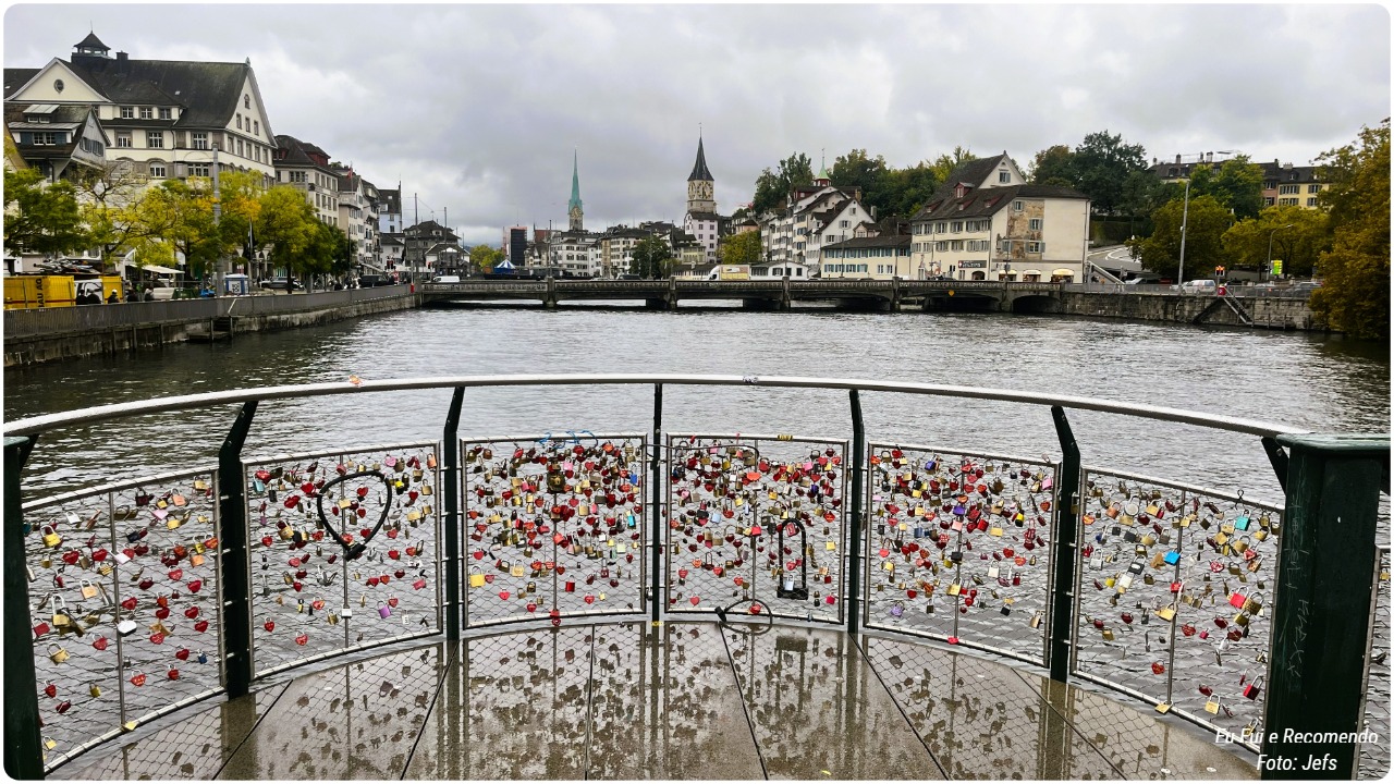 A Ponte Mühlesteg em Zurique é daquelas que dá vontade de parar um tempinho só para apreciar a vista do rio Limmat e sentir a atmosfera da cidade. Ela é simples, mas cheia de vida, e o que chama atenção mesmo são os cadeados presos no guardo-corpo.