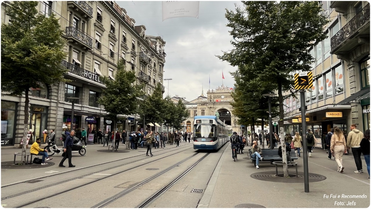 A Bahnhofstrasse, em Zurique, é uma das ruas mais famosas e elegantes da cidade, conhecida por suas lojas de luxo, boutiques internacionais e cafés charmosos.