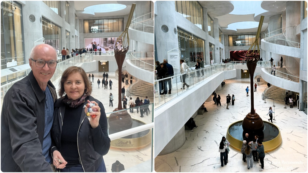 Em nosso último dia em Zurique, resolvemos adoçar a despedida com uma visita ao Museu Lindt Home of Chocolate, foi uma escolha perfeita! O prédio em si já impressiona logo na chagada: moderno, elegante, com uma arquitetura que mistura vidro e curvas suaves.